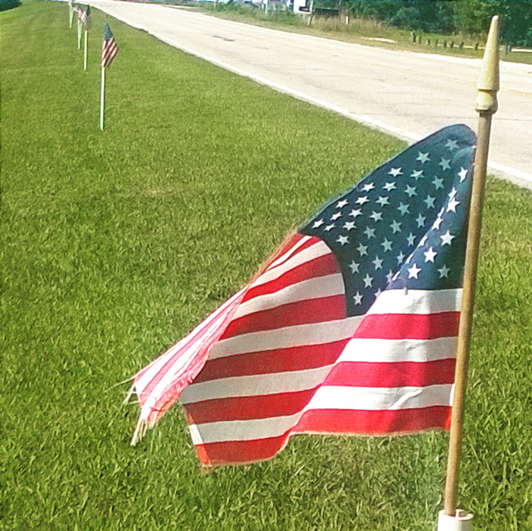 I love Small Town America. I love that my little town has people who volunteer their time to commemorate national holidays. Without fail about a week before Memorial Day, Independence Day and Veteran’s Day, flags appear along a three mile stretch leading to the back gate of Camp Lejeune Marine Corp Base – all to honor those that serve/have served.