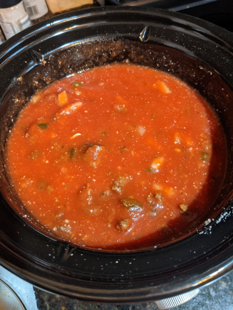 Once the meat is rinsed, some folks put it back in the pan and heat it to remove the excess water. I chose to dump the meat on several paper towels and sort of patted/squeezed the hamburger dry.